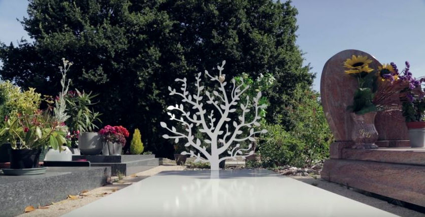 Origins of the name : « Pando » refers to the oldest vegetal organism still alive situated in US. This tombstone is inspired by traditions which date back over thousands of years which consist in planting a tree in memory of a deceased person, the white young tree is a representation of his purity and serenity.